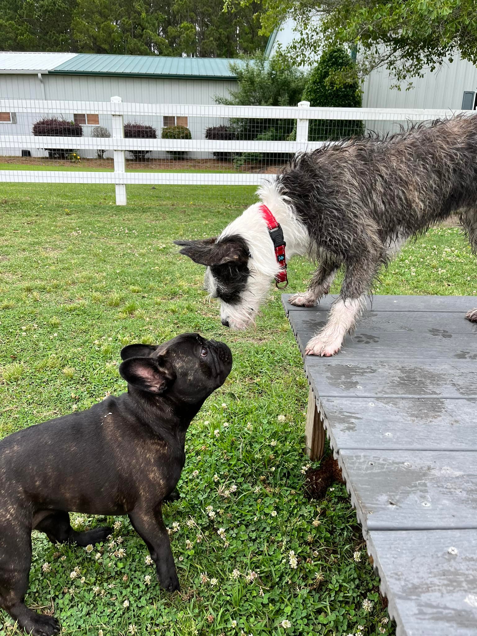 Q. Do my dogs play with other dogs while boarding? A. NO! Unless your dog is boarding with a household relative, or it is agreed upon by all owners and staff that they can play together. At this moment, we are currently not conducting any Daycare activities!!